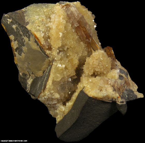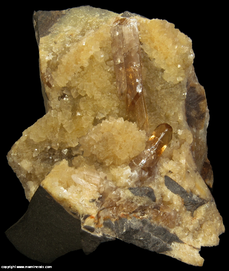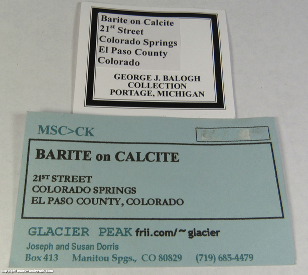 This specimen looks remarkably similar to Barite on Calcite from the famous Elk Creek location. Even the fluorescence is similar as is the matrix. The biggest difference is both the Barite and the Calcite are a little lighter in color. Also, specimens from this location are considerably less common than those from Elk Creek.